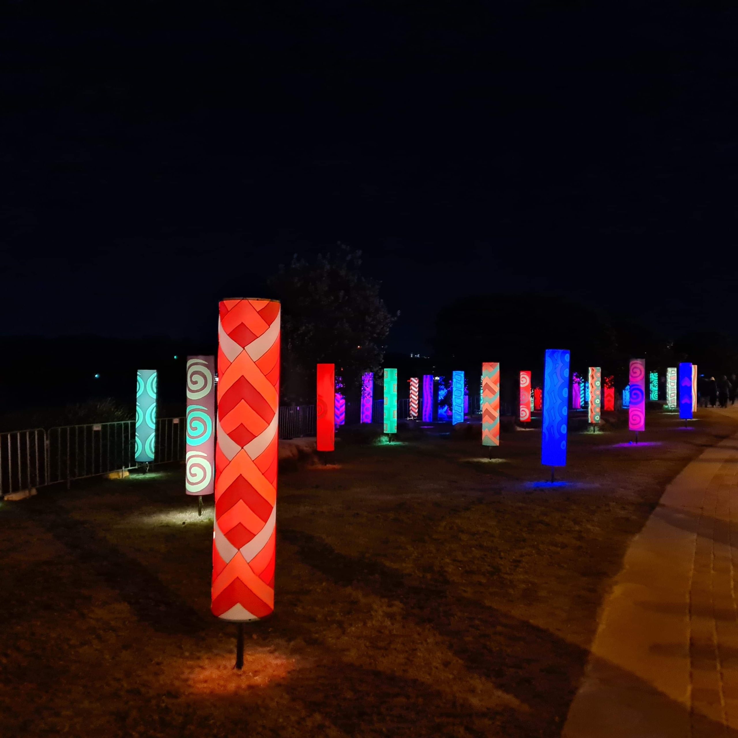 The columns lit up at night and continuously changed colours throughout the evening.