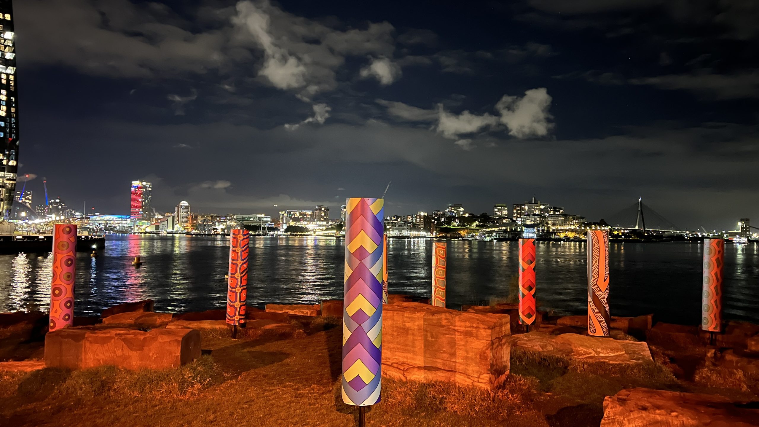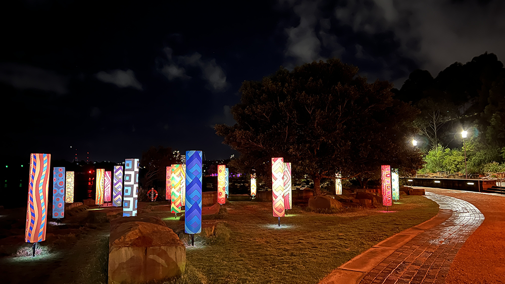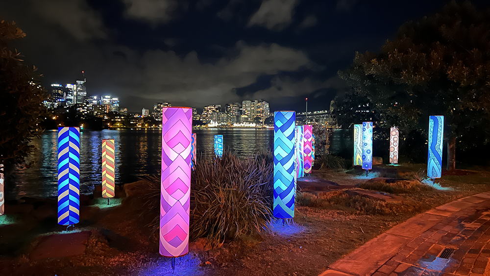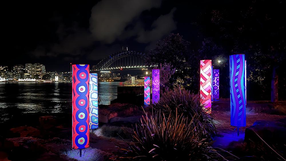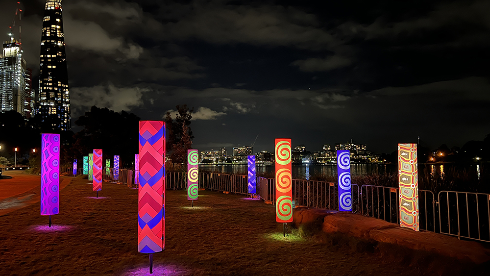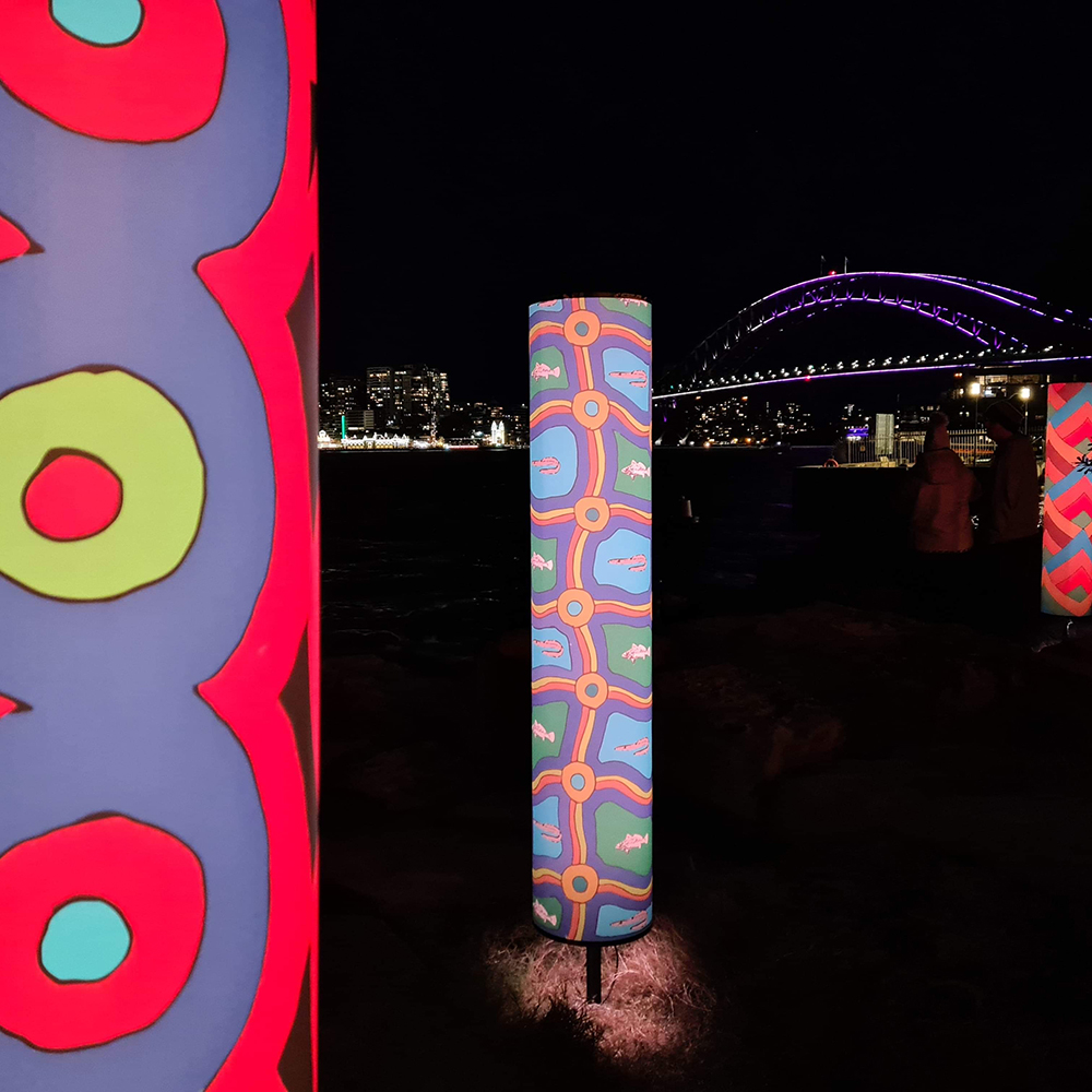 Vivid Sydney is owned, managed and produced by Destination NSW, the NSW Government’s tourism and major events agency. I was commissioned by and collaborated with MANDYLIGHTS to deliver 150 Indigenous designs for the 2022 VIVID Festival.